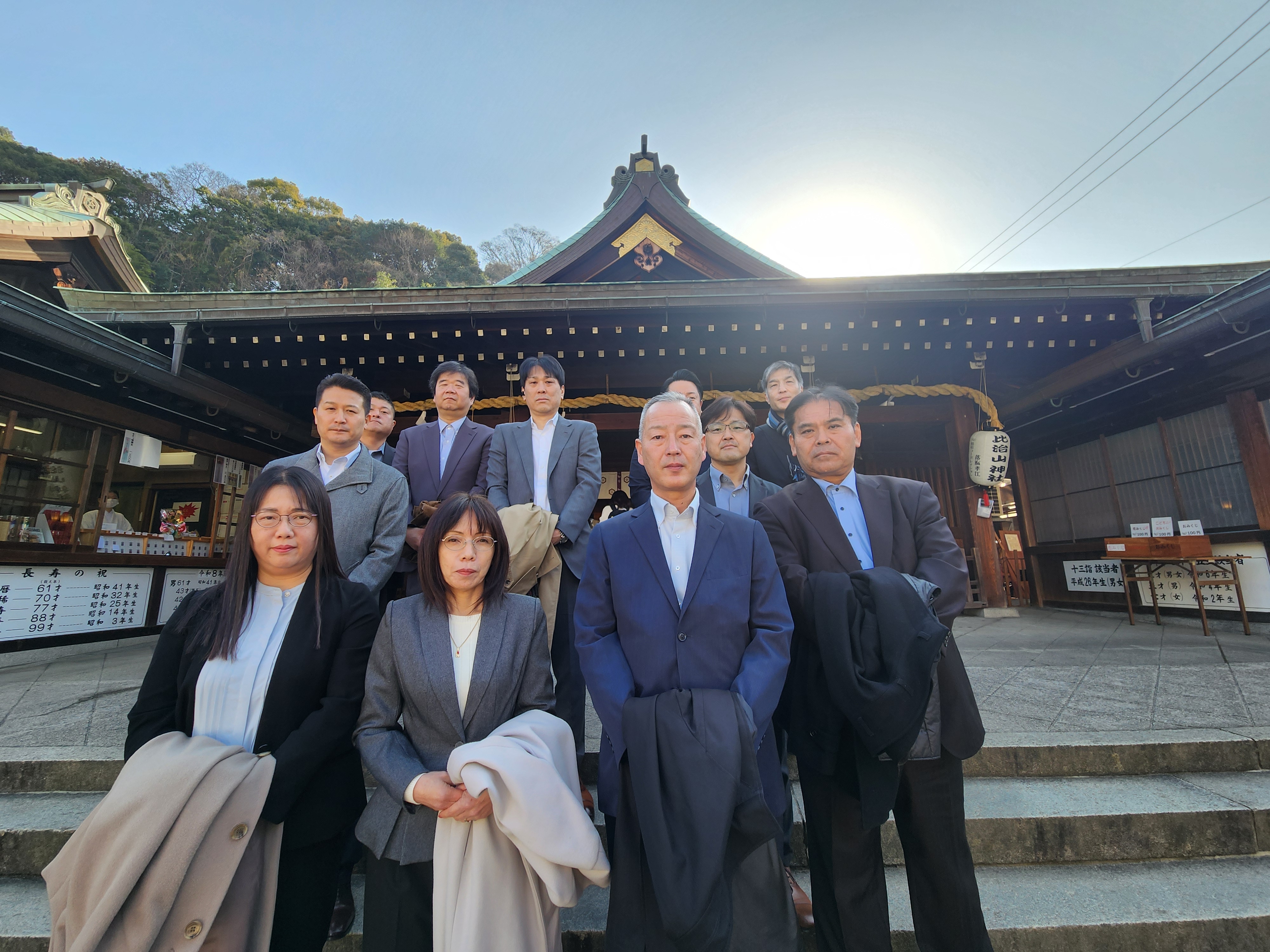広島東西地協三役・ブロック長で比治山神社にて安全祈願を実施後、2025年の安全と各組織・企業の発展を祈念し、